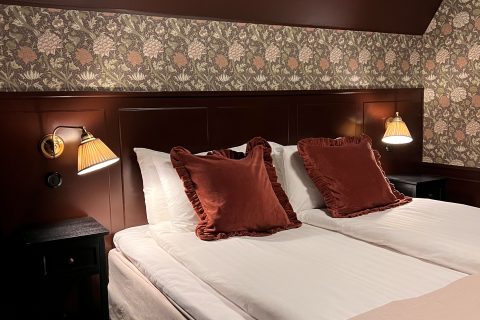Standardrum med en 180 cm bred dubbelsäng (två 90 cm-sängar som kan separeras vid behov), passar lika bra för parresor som för kollegor som delar rum. I rummet finns skrivbord och stol, fåtölj, TV, säkerhetsskåp, hårtork samt badrum med dusch. Fritt wifi. Frukostbuffé ingår i priset.